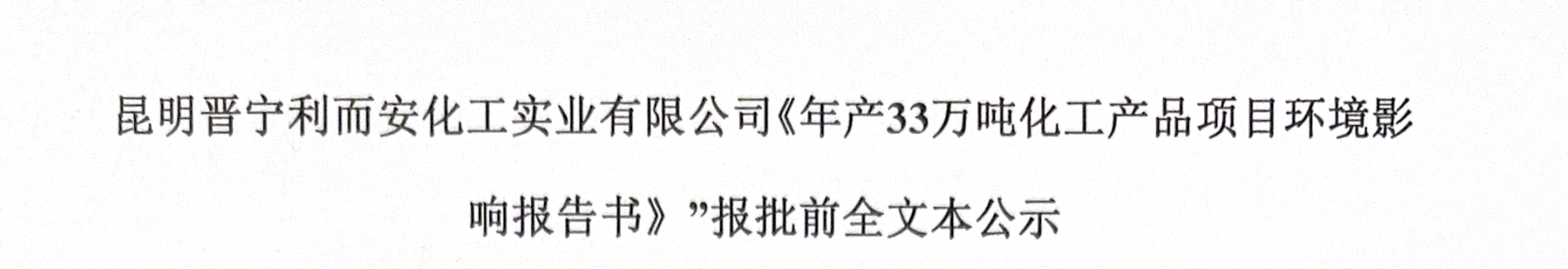 昆明晋宁利而安化工实业有限公司《年产33万吨化工产品项目环境影响评价报告书》报批前全文本公示